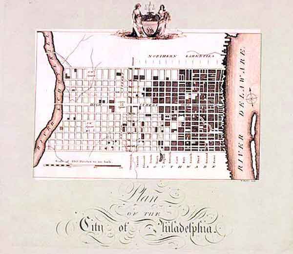 Hear an American voice in the wilderness, speaking to us from the year 1830. In an anonymous article in the American Journal of Science and Arts (as quoted by John Reps), the writer declares the need to...' embrace a science, for which I cannot find a name, for the good reason that among the nations from which we draw our language, no such science could be known. I mean the choice of position, and the planning of towns...'. Anonymous noted a great opportunity going to waste, in a time when so many towns were being founded. The grid bothered him, and he recommended just a little bit of irregularity to add some life to it. While anonymous was writing, hundreds of plans like this one were being laid out-a nation in a hurry, initiating the biggest wave of urbanization in the history of the planet. Knoxville, according to one of its citizens I once met, '...was built ugly, and stayed ugly.' But what clues to the American character does this manic geometry really betray? The consensus of opinion says that Americans are above all a commercial people, who like things practical and straightforward and rectilinear—'on the square'. Their grid, like their government, their decimal currency, or their manner of expansion by the methodical creation of new states, was the heir of Enlightenment rationality and Anglo-Saxon pragmatism, and it marked the dawning of something truly new in the world, an element of the 'New Secular Order' proclaimed on the Great Seal of the United States. In the colonial period, cultured gentlemen, working from royal charters and heading companies with considerable resources behind them, had given early America (both north and south) some remarkably creative and sophisticated town plans. Sad to say, that tradition was one of the first casualties of American independence. Left to ourselves, we quite rapidly abandoned any pretense of building amenity or character into our towns, and laid out nothing but simple grids. If these had so much as a central square, it was usually only saving land to build a courthouse or capitol on later. The model for all these plans would be that of Philadelphia. Before William Penn started his Holy Experiment, he already had some experience in colonization (in Perth Amboy, New Jersey), and he knew exactly what he was doing. Penn had been in London during the time of the Great Fire in 1666, and his Philadelphia plan is nearly the image of an unsuccessful one submitted by Richard Newcourt for London's rebuilding, with the same grid and quincunx of squares Memories of the fire were undoubtedly also behind Penn's prudent intention for his new foundation to remain spacious and open, with individual houses on large lots: